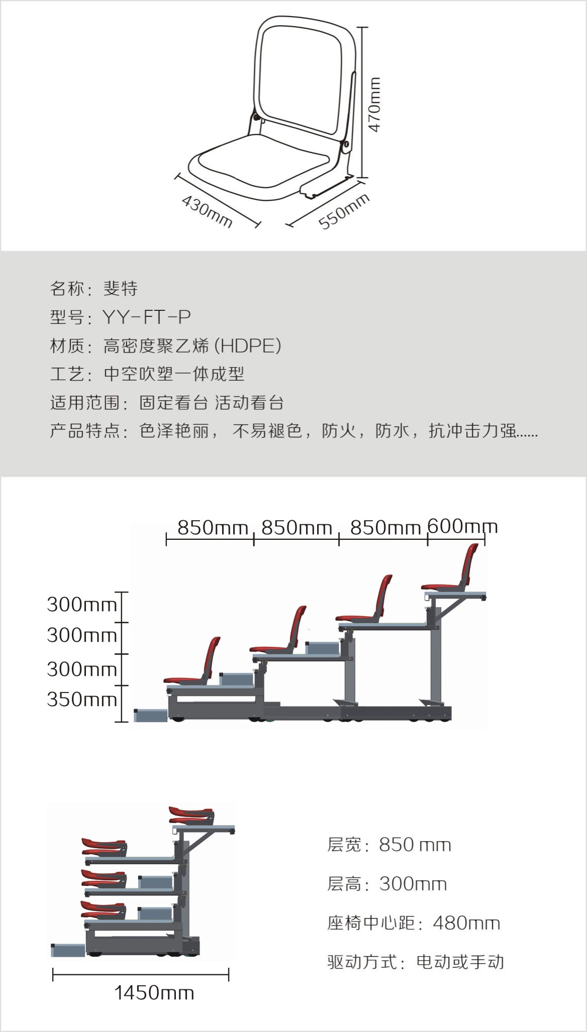 體育館,賽事中心,禮堂等經(jīng)常需要舉辦各種不同目的的活動(dòng),因此要求靈活的多功能的座椅。深圳優(yōu)藝體育的活動(dòng)看臺座椅方案將使您的空間利用最大化,該活動(dòng)看臺能夠輕松地電動(dòng)或者手動(dòng)展開收合。